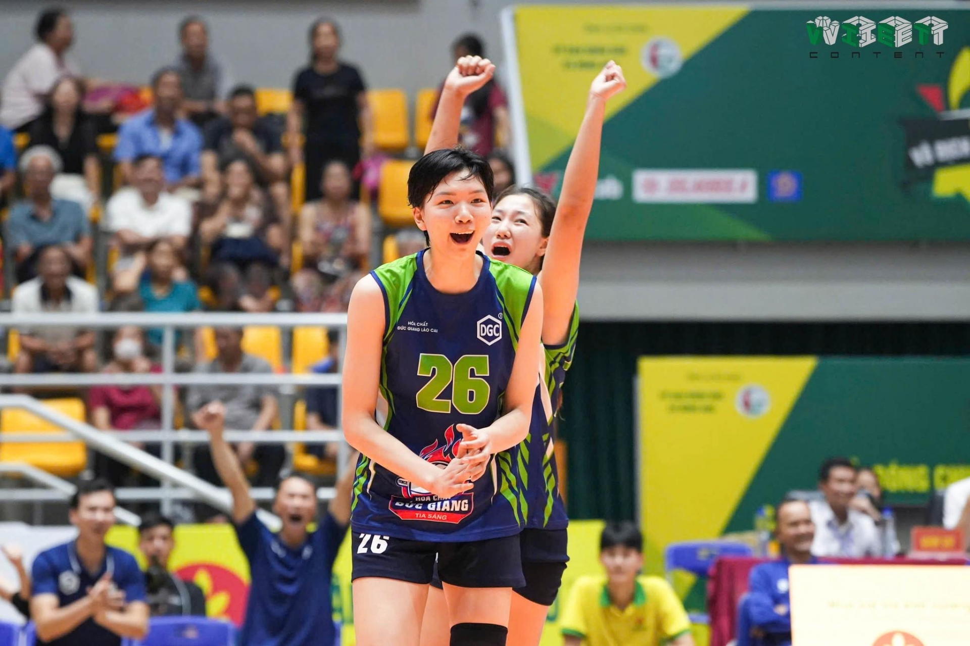 Chung cuộc, HCĐG Lào Cai thắng Thông tin-Đông Bắc 3-2 (21-25; 25-16; 25-16; 26-28; 15-7).